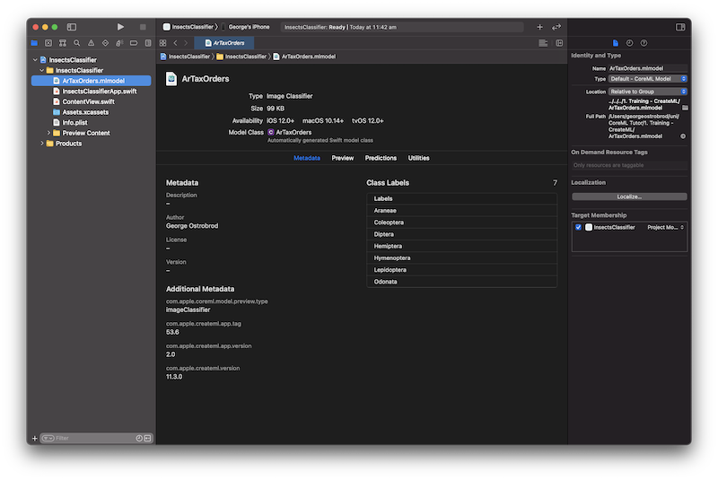 let classifierMetadata = MLModelMetadata(author: "George Ostrobrod",