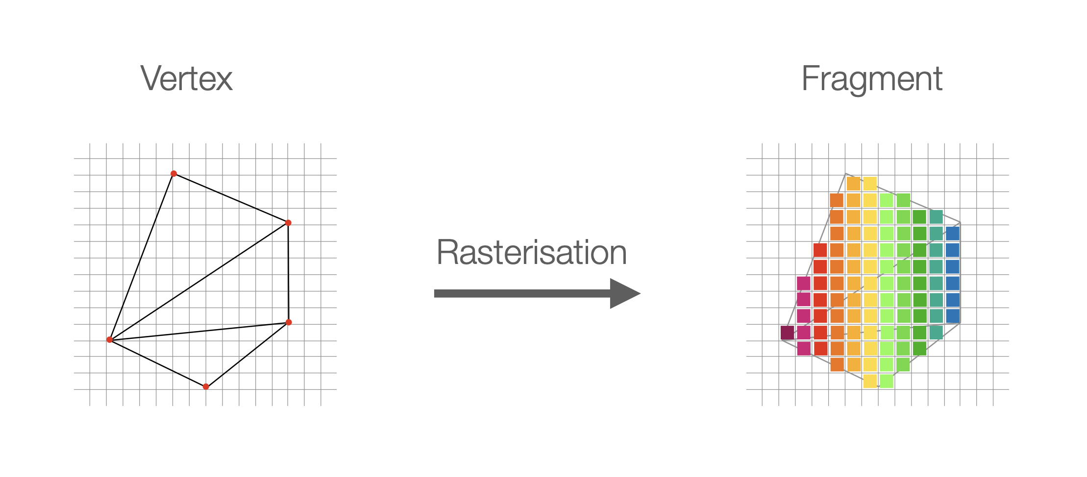 In essence, the vertex shader runs for every vertex in your geometry, while the fragment shader runs for every pixel within the geometry in the viewport.