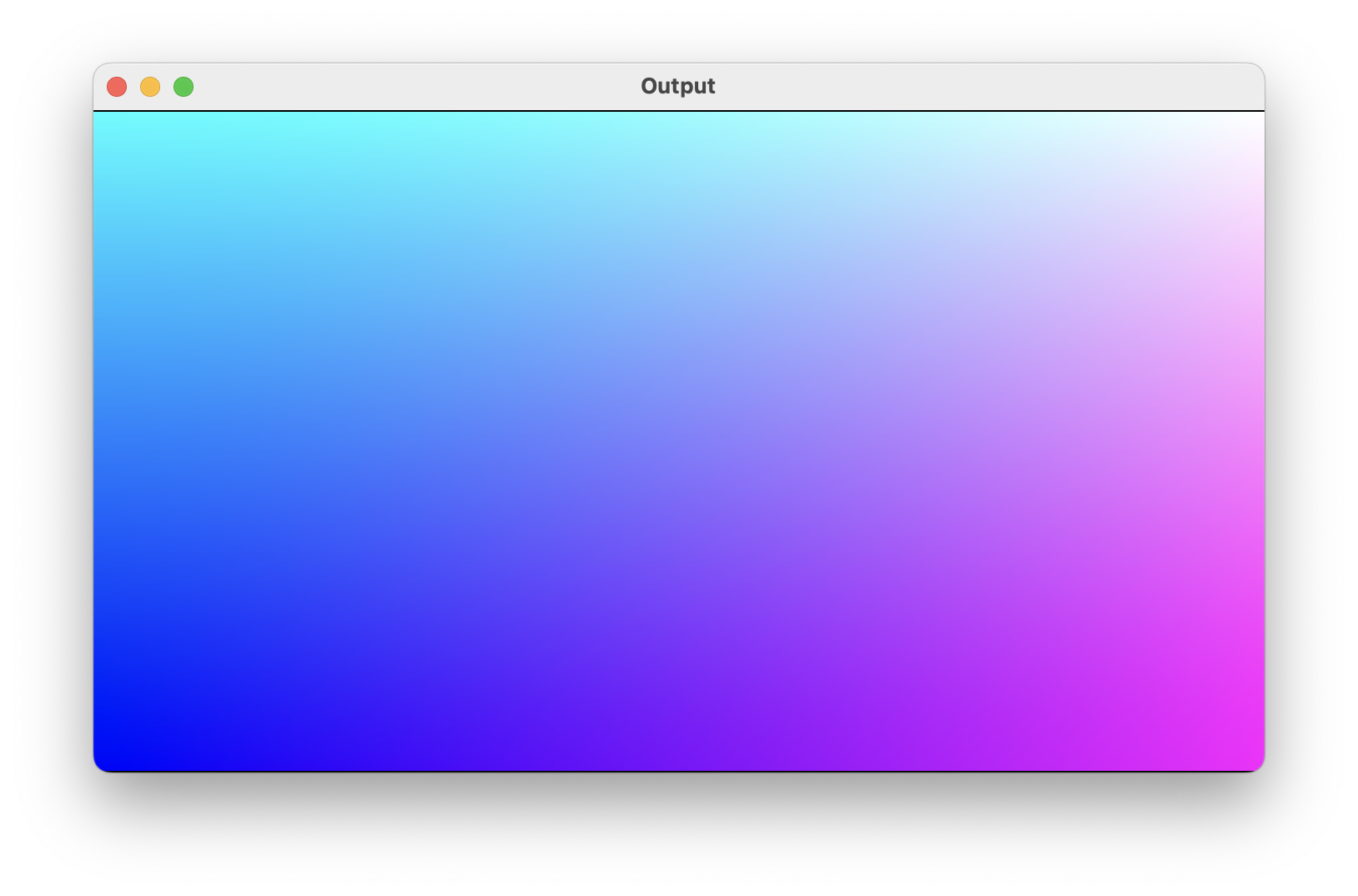 [[position]] attribute.vertex or [[vertex]] keyword marks the function as a vertex shader.[-1, 1], we need to remap the values from [0, 1], or else the geometry would only cover a quarter of the viewport.fragment or [[fragment]] keyword indicates that the function is a fragment shader.[[stage_in]]) from our structure is read for this specific fragment (already interpolated).As a result of these shaders, you will see the following output: (description of what the output looks like would go here).