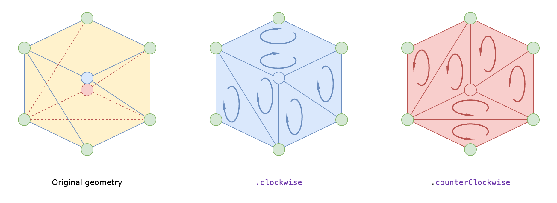 For triangles, a face culling step can also be applied, which discards triangles based on their orientation (determined by the clockwise or counterclockwise order of their vertices). This is typically used to hide triangles that are naturally invisible due to their orientation relative to the viewer.
