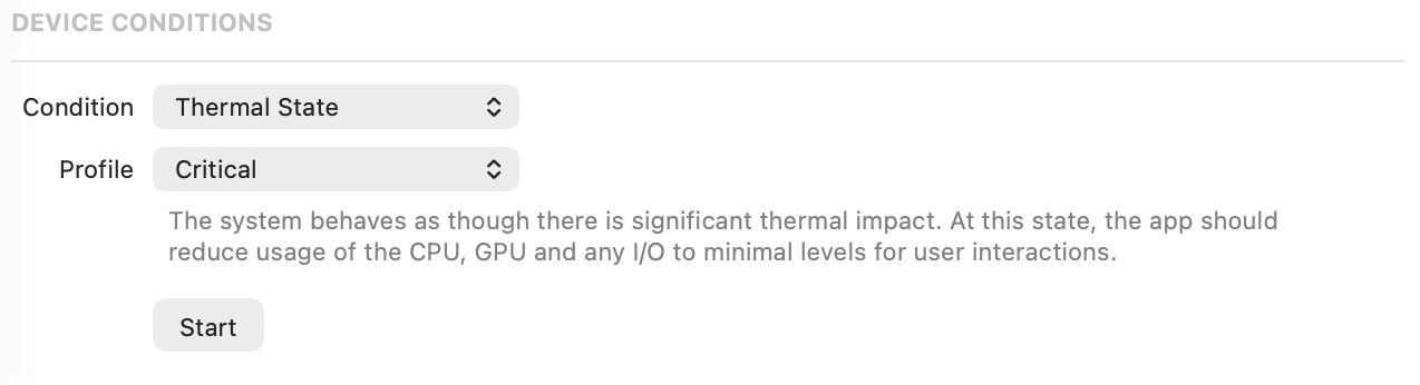 Also, if you develop for a mobile device, you can forcibly change its condition so you can check your app's behavior in different emulated edge states of network, GPU, and thermal. You can find that in the Window -> Devices and Simulators menu.