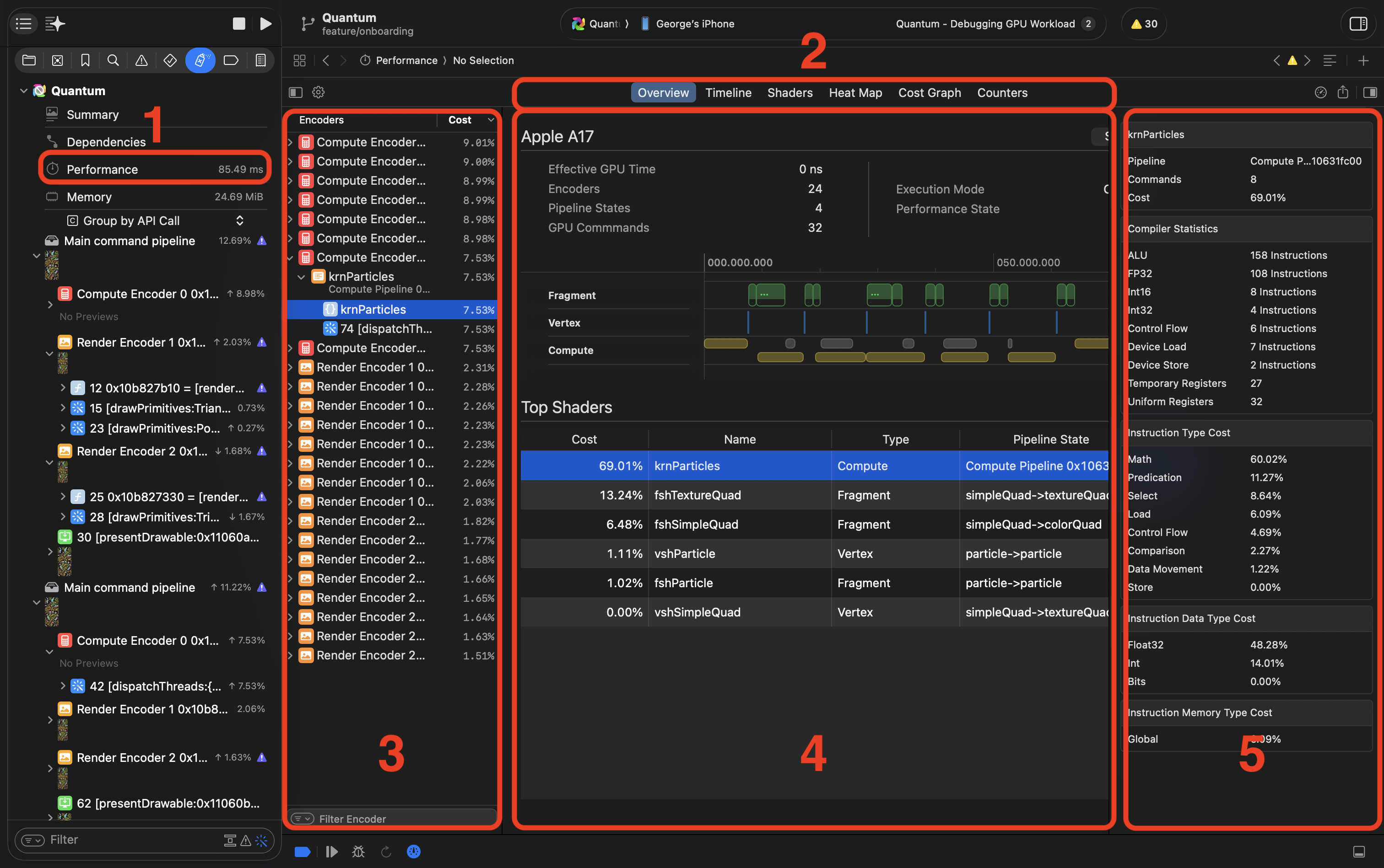 4. Instrument area. Here you can find details of each instrument. For Overview, it's some summary, basic timeline and shaders statistics.