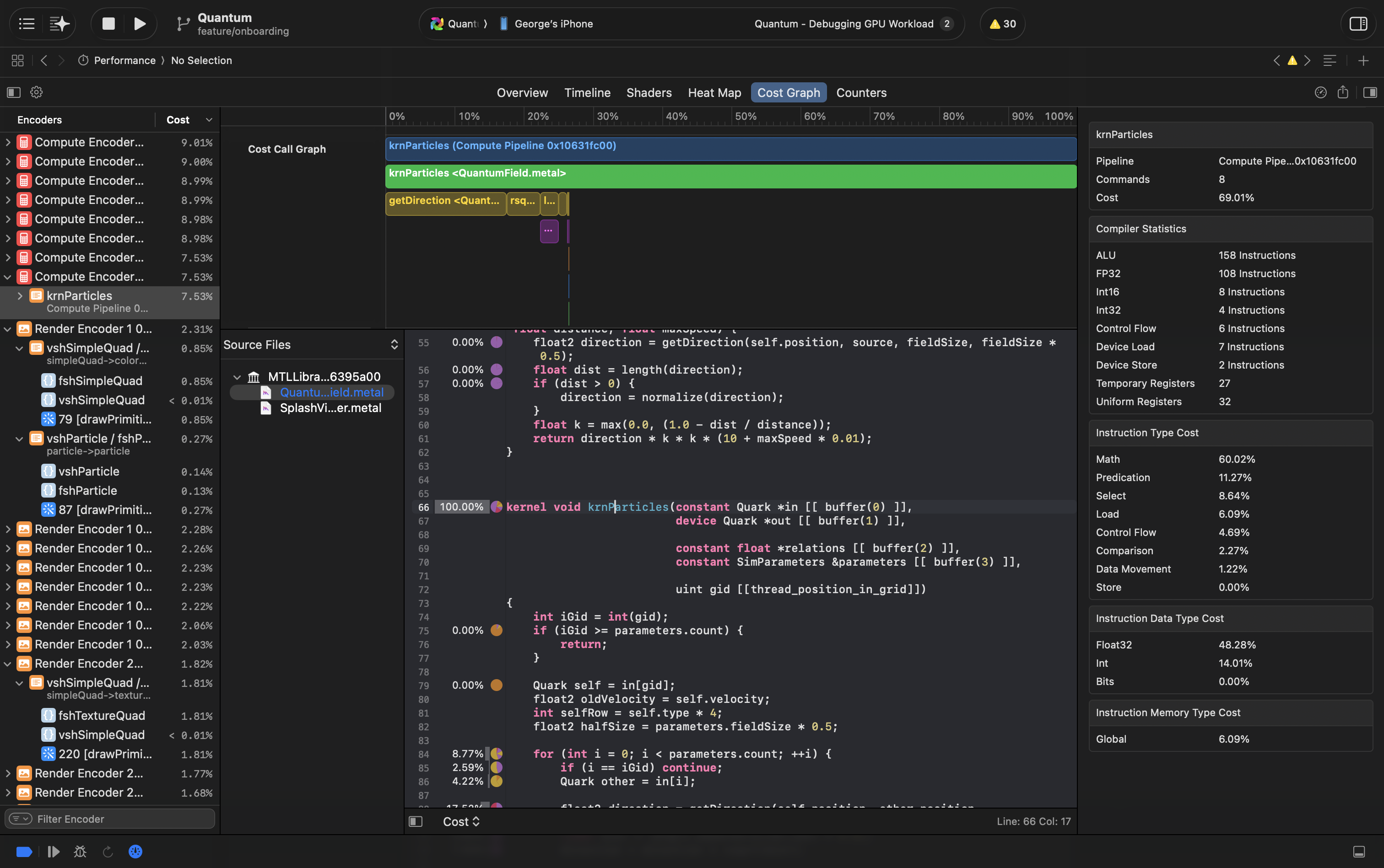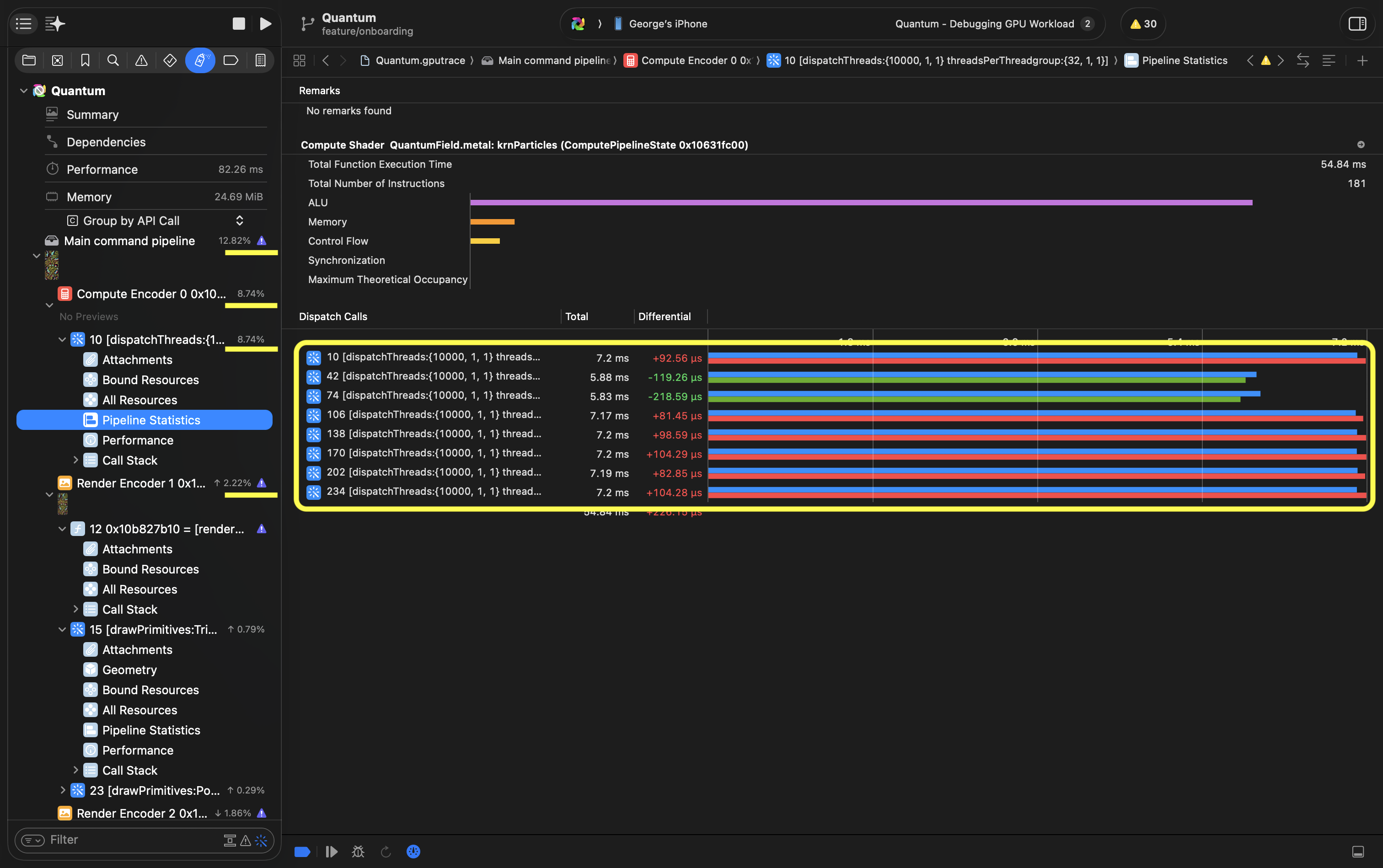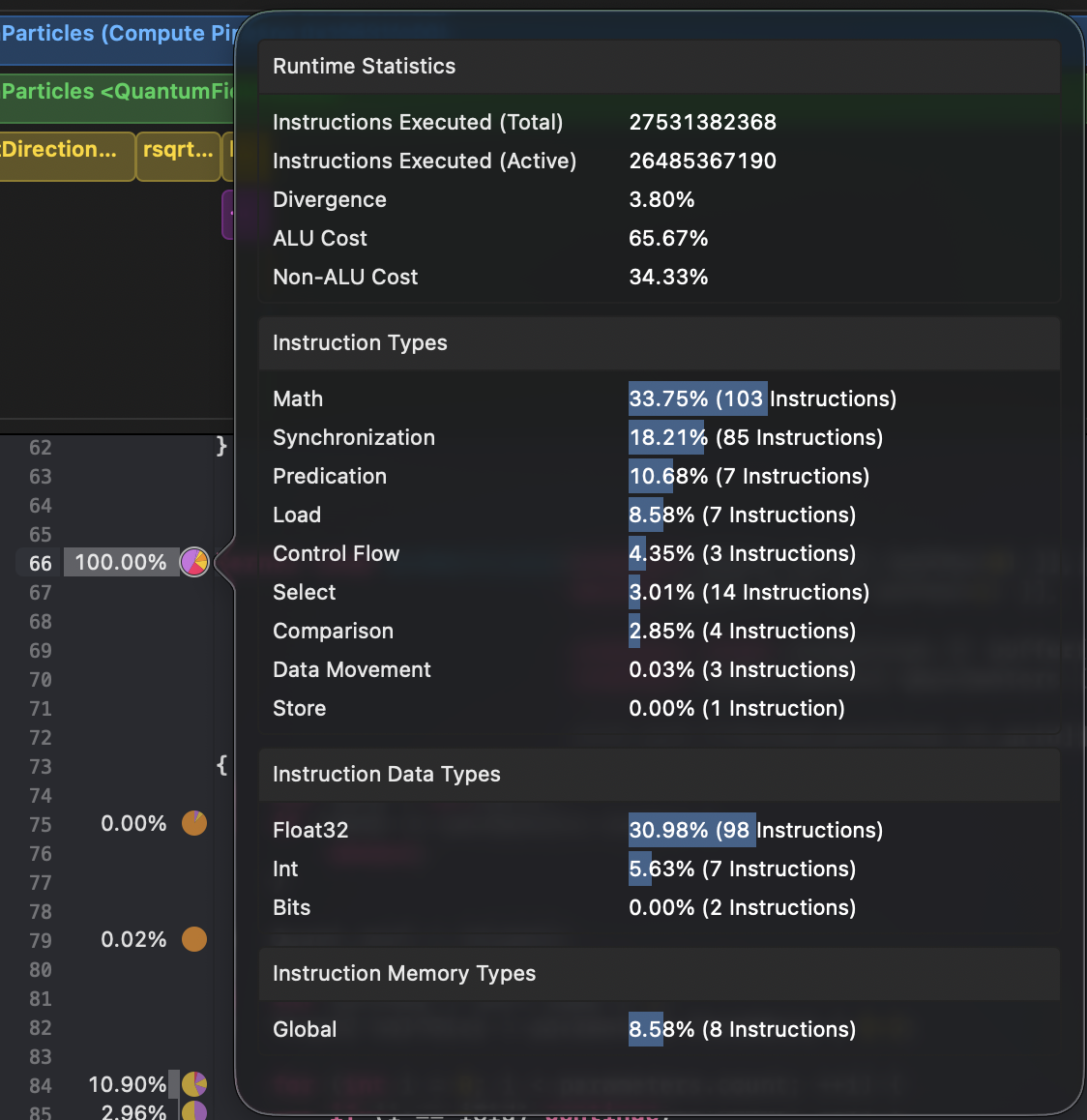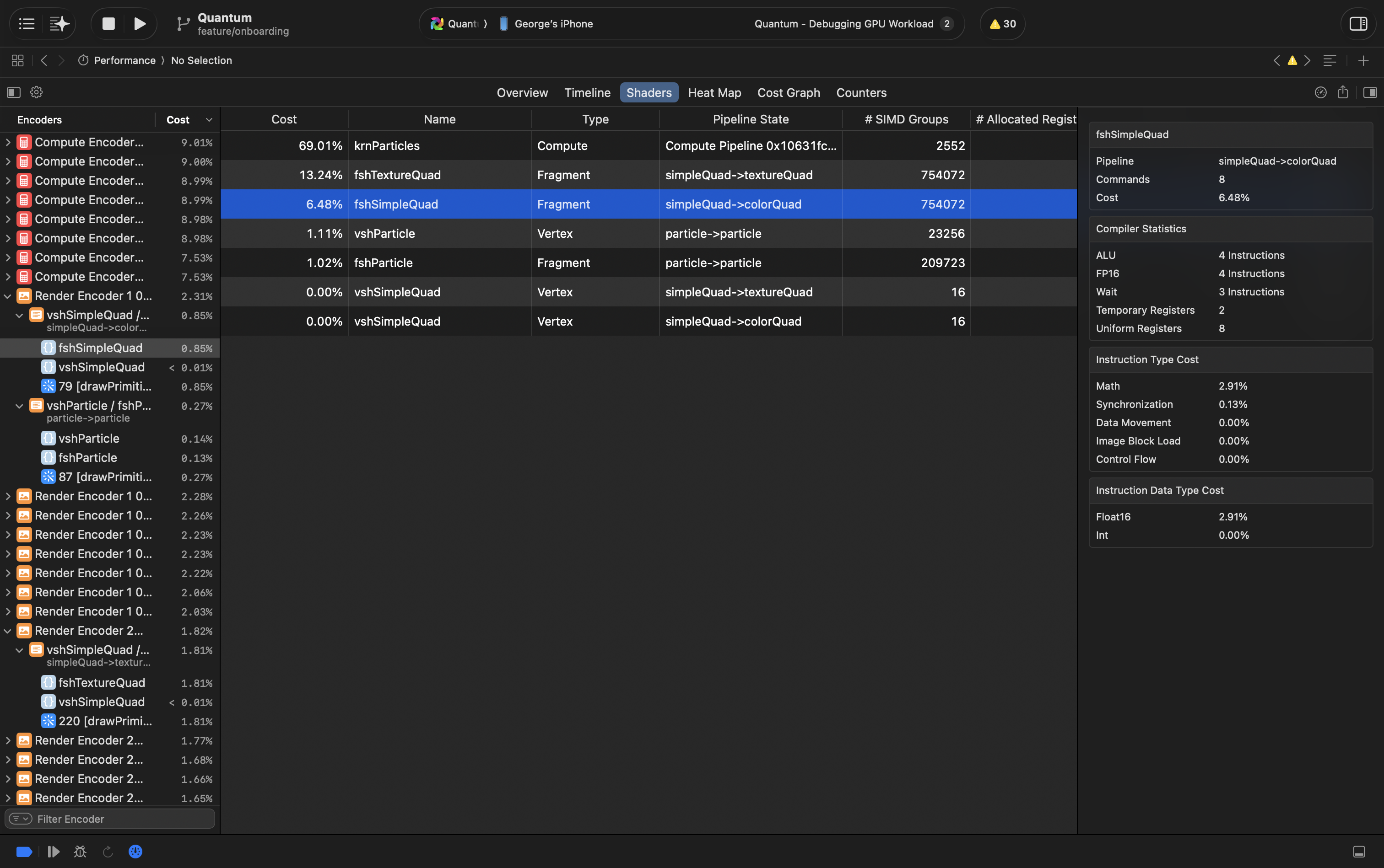 This instrument shows all counters for every draw or dispatch call. It's similar to counters in Timeline instrument, but summarised and more numbers. Use it to understand what's overloaded and what's underloaded to find ways for optimisation and to compare between calls.